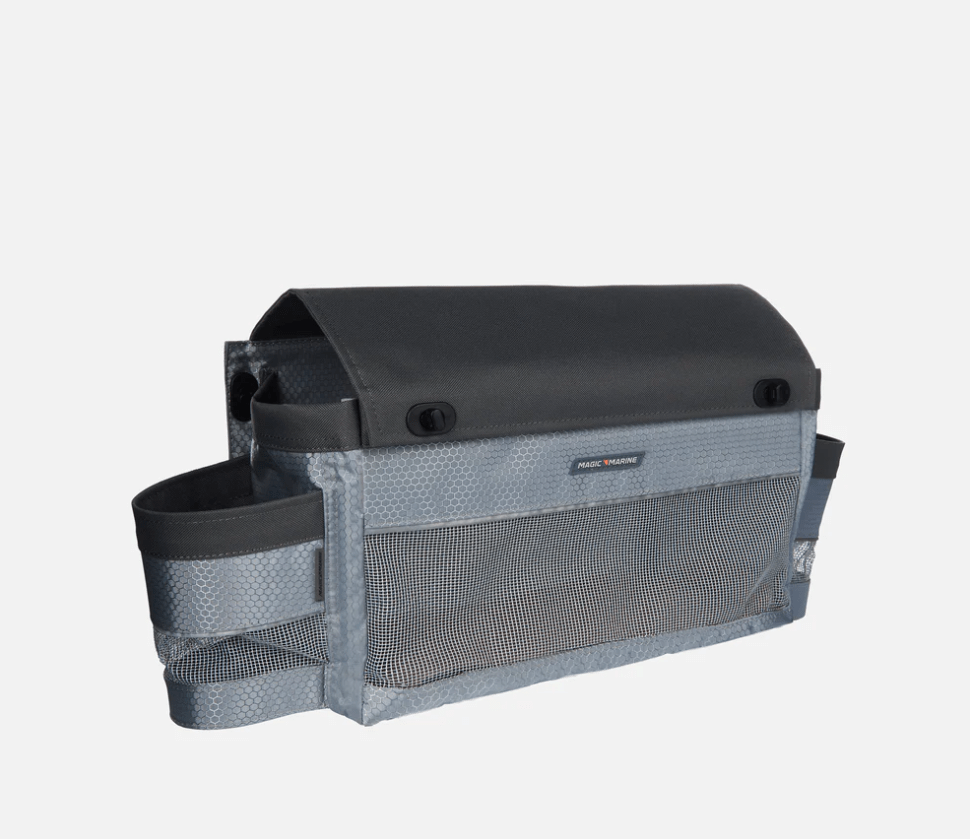 Die Cockpit-Tasche Sheetbag Deluxe Gear von Magic Marine lĂ€sst sich auch ohne Bohren per Klettverschluss montieren. So kann sie auf Wunsch leicht entfernt werden, z.B. um das Equipmemt mit von Bord zu nehmen oder um die Tasche bei Nichtbenutzung vor UV-Strahlen zu schĂŒtzen. Die durchdachte Tasche bietet neben viel Stauraum noch zwei GetrĂ€nkehalter, sowie eine clevere Schutzabdeckung.