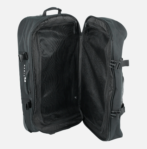 Reisetasche auf Rollen mit zwei in der Mitte geteilten HauptfĂ€chern, ideal zum Trennen von SegelausrĂŒstung und Kleidung, fĂŒr eine bessere Organisation auf langen Reisen. EnthĂ€lt zwei grosse Fronttaschen, ideal fĂŒr wichtige, leicht zugĂ€ngliche GegenstĂ€nde auf Reisen.